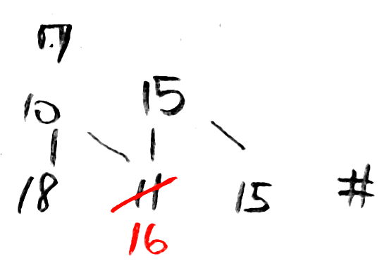 - 두 번째 숫자에 대해 dp[2][1] + ori[3][1] = 15 + 1 = 16이 11보다 크므로 dp[3][1]을 16으로 업데이트한다.