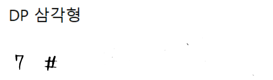 원본 삼각형을 보면, 하나의 숫자에 대해 더하기 연산은 ↓ 또는 ↘ 방향으로 이루어 진다. 중복되는 덧셈 연산을 방지하기 위해 동적 계획법을 사용해야 한다. 이제 최대값을 저장할 배열인 dp 배열을 만들자.