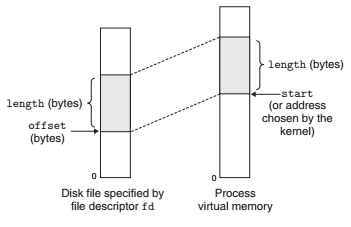 void *mmap(void *start, size_t length, int prot, int flags, int fd, off_t offset);
