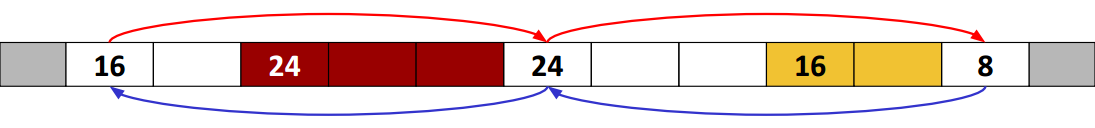 - 그래서 우리는 size 뿐만 아니라 이전/다음 포인터도 저장해야 한다.