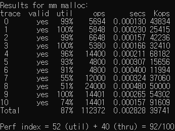 6️⃣ size class 함수 조정 + realloc 함수 수정 (92점) (코드)