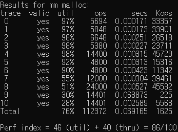 1️⃣ 묵시적 가용 리스트 + First-fit (57점) (코드)