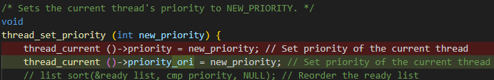 - 수정 후의 코드는 priority_ori를 바꾼다 → donation 중이면 무시되고, 나중에 복원할 때 반영된다.