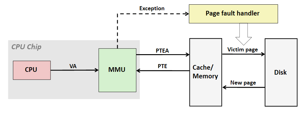 지난 프로젝트에서는 Page fault가 항상 커널이나 유저 프로그램에서의 버그를 의미했다. 하지만 이제부터는, Page fault는 파일이나 스왑 슬롯으로부터 페이지를 가져와야 한다는 것을 의미한다. 이러한 케이스들을 다루기 위해서 더 정교한 page fault 핸들러 page_fault()를 구현해야 한다.