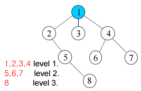- BFS : process all the vertices on a given level before moving to the next-higher level