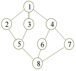 - 위 그래프를 BFS로 탐색하면, 순서는 1-2-3-4-5-6-7-8 순이 된다.