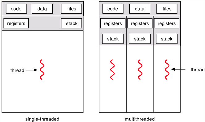 멀티 쓰레드란? 멀티쓰레드(Multi Thread)는 하나의 프로세스 내에서 둘 이상의 쓰레드가 동시에 작업을 수행하는 것을 의미한다. 비슷한 개념으로 멀티 프로세스(Multi Process)는 여러 개의 CPU를 사용하여 여러 프로세스를 동시에 수행하는 것을 의미한다. 멀티 쓰레드와 멀티 프로세스 모두 여러 흐름을 동시에 수행하다는 공통점을 가지고 있다. 하지만 멀티 프로세스는 각 프로세스가 독립적인 메모리를 가지고 별도로 실행되는 반면, 멀티 쓰레드는 각 쓰레드가 자신이 속한 프로세스의 메모리를 공유한다는 점이 다르다. 멀티 쓰레드는 각 스레드가 자신이 속한 프로세스의 메모리를 공유하므로, 시스템 자원의 낭비가 적다. 하나의 쓰레드가 작업을 할 때 다른 쓰레드가 별도의 작업을 할 수 있어 사용자 경험..