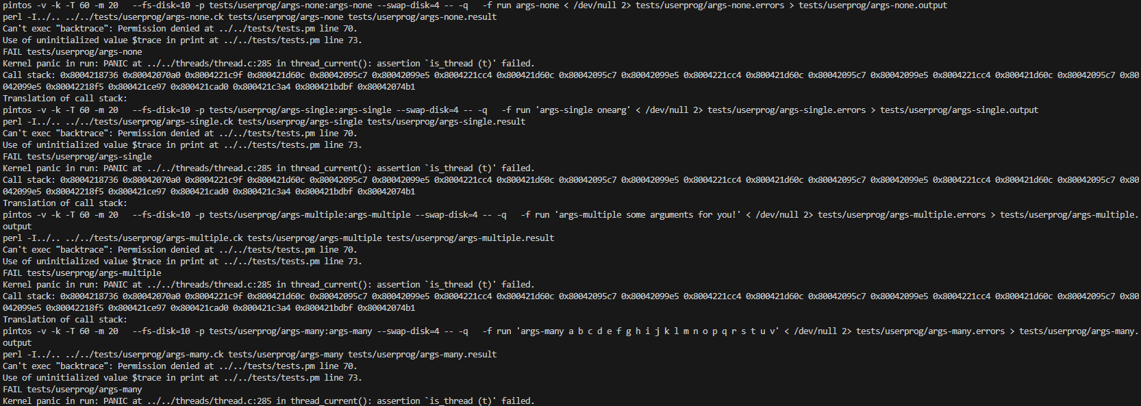 Kernel PANIC recursion at ../../threads/thread.c:285 in thread_current().